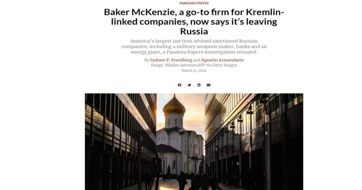 โดยหนึ่งในบริษัทสำนักกฎหมายชื่อดังที่ถูกกล่าวถึงนั้นก็คือบริษัทเบเคอร์ แม็คเค็นซี่ อย่างไรก็ตาม หลังจากที่นานาชาติได้มีการคว่ำบาตรต่อประเทศรัสเซียในหลายด้านด้วยกัน ทางด้านของนายจอห์น แมคกินเนสส์ โฆษกของบริษัทเบเคอร์ แม็คเค็นซี่ ก็ได้ให้สัมภาษณ์ทางอีเมลกับไอซีไอเจว่า บริษัทเบเคอร์ แม็คเค็นซี่ นั้นจะดำเนินการปิดสำนักงานทั้งหมดในประเทศรัสเซีย