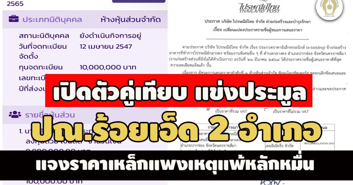 - เจ้าของยันไม่เกี่ยวปมฮั้ว! เปิดตัว หจก.อัมพลฯ สร้างที่ทำการ ปณ.ร้อยเอ็ด 4 อำเภอ 49.3 ล.
