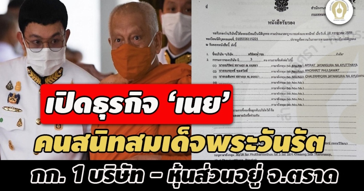เจาะลึกธุรกิจ ‘เนย’ คนใกล้ชิด 'สมเด็จพระวันรัต’ ผู้ถูกล่าวหาคดียักยอกทรัพย์ 200 ล. พบร่วมกับพวก จดทะเบียนตั้งบริษัท 1 แห่ง ปี 2556 งบการเงินล่าสุด ไม่มีรายได้ หุ้นส่วน 1 ใน 2 คน ทำหลายประเภทใน จ.ตราด