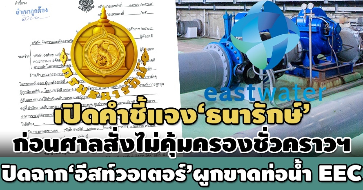 ข้ออ้าง'อีสท์วอเตอร์'ฟังไม่ขึ้น! 'ศาลปค.'ยกขอคุ้มครองชั่วคราวฯ คดีประมูลท่อส่งน้ำ EEC