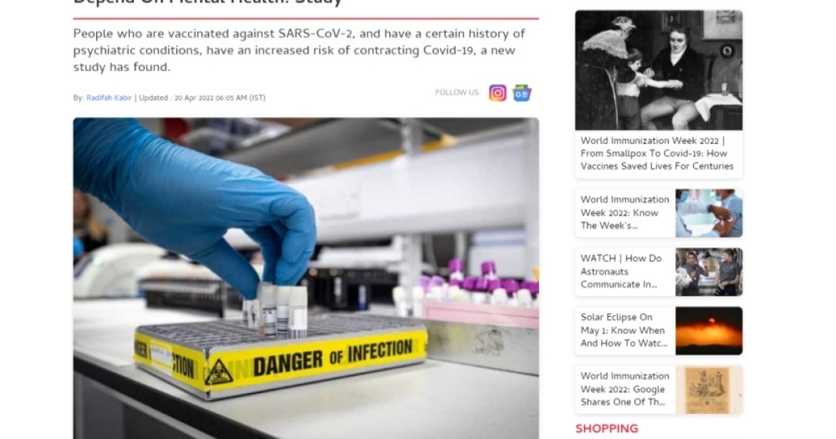 ผลการศึกษาล่าสุดนั้นพบว่าผู้ที่ฉีดวัคซีนป้องกันไวรัสโควิด-19 ถ้าหากมีประวัติเกี่ยวกับสภาพทางจิตเวชหรือว่ามีประวัติเกี่ยวกับโรคทางจิตมาก่อน บุคคลนั้นจะมีเสี่ยงต่อการติดไวรัสโควิด-19 เพิ่มขึ้น ทั้งนี้ผลการศึกษาดังกล่าวถือว่าเป็นที่น่าสนใจเพราะอาจจะเป็นสิ่งที่อธิบายถึงประเด็นเรื่องความบกพร่องของและความผิดปกติบางอย่างที่จะเกี่ยวโยงไปถึงการติดเชื้อไวรัสโควิด-19