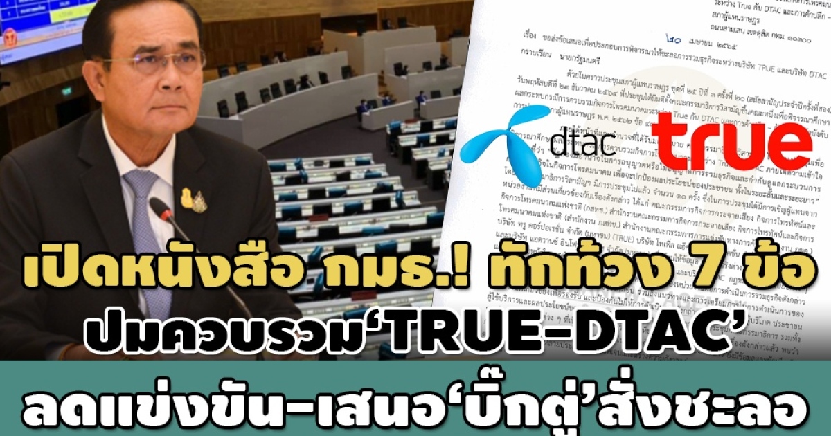 ทั้งนี้ หนังสือดังกล่าว คณะกรรมาธิการวิสามัญฯ ได้แสดงความกังวลกรณีการรวมกิจการระหว่าง บมจ.ทรู คอร์ปอเรชั่น หรือ TRUE กับ บมจ.โทเทิ่ล แอ็คเซ็ส คอมมูนิเคชั่น หรือ DTAC ไว้ใน 7 ประเด็น และเสนอให้ พล.อ.ประยุทธ์ ซึ่งเป็นผู้บริหารสูงสุดของประเทศ ขอให้หน่วยงานที่รับผิดชอบชะลอการควบรวมกิจการดังกล่าวไปก่อน มีรายละเอียด ดังนี้