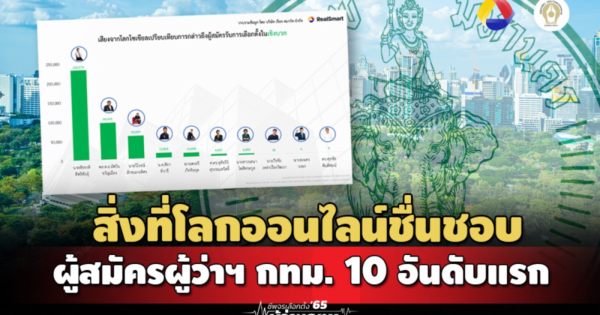 - 10 อันดับผู้สมัครผู้ว่าฯกทม.ถูกพูดถึงมากสุดในโลกออนไลน์
