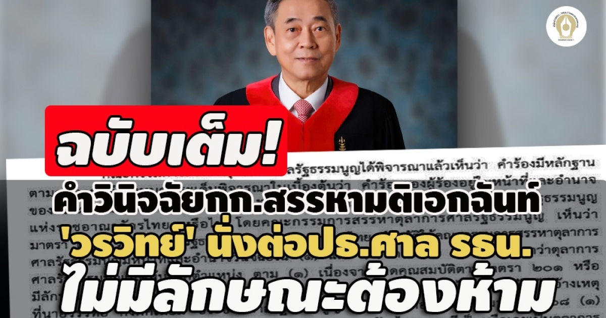 หมายเหตุ สำนักข่าวอิศรา (www.isranews.org) : สืบเนื่องจากเมื่อวันที่ 22 เม.ย.2565 คณะกรรมการสรรหาตุลาการศาลรัฐธรรมนูญ ที่มีประธานศาลฎีกาเป็นประธาน มีวาระพิจารณากรณีที่ตุลาการศาลรัฐธรรมนูญ 4 คน ประกอบด้วย ศ.ดร.นครินทร์ เมฆไตรรัตน์, ศ.ดร.ทวีเกียรติ มีนะกนิษฐ , ศ.พิเศษ ดร.จิรนิติ หะวานนท์ และ นายอุดม สิทธิวิรัชธรรม ยื่นหนังสือถึงเลขาธิการสำนักงานศาลรัฐธรรมนูญ เพื่อส่งให้คณะกรรมการสรรหาวินิจฉัย วาระการดำรงตำแหน่งของ นายวรวิทย์ กังศศิเทียม ประธานศาลรัฐธรรมนูญ ที่มีอายุครบ 70 ปี เป็นผู้มีคุณสมบัติหรือลักษณะต้องห้าม อันเป็นเหตุให้พ้นตจากตำแหน่งหรือไม่
