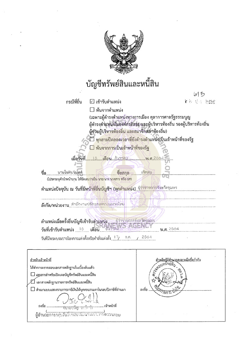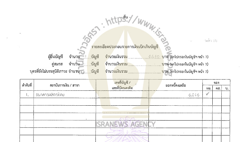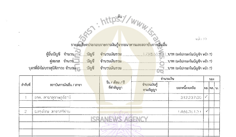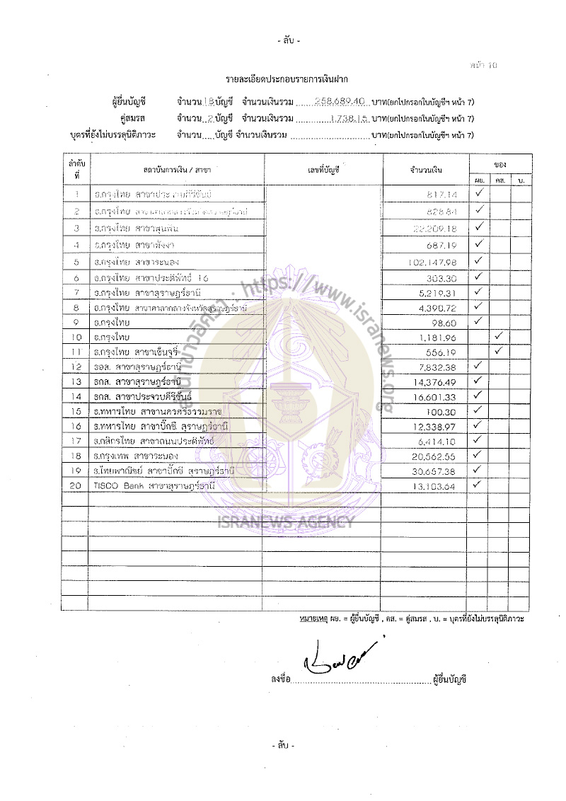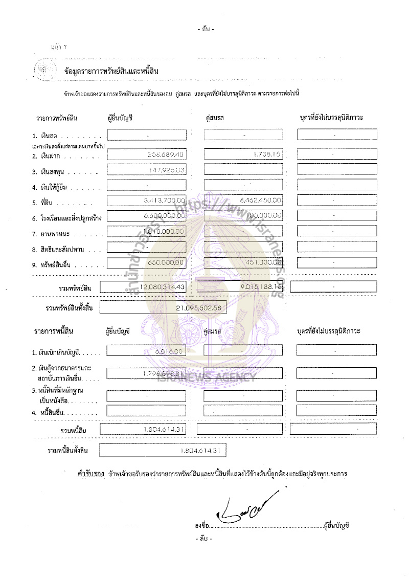 แจ้งมีหนี้สิน 1,804,614.31 บาทจากเงินเบิกเกินบัญชี 6,016 บาท เงินกู้ธนาคาร 1,798,598.31 บาท