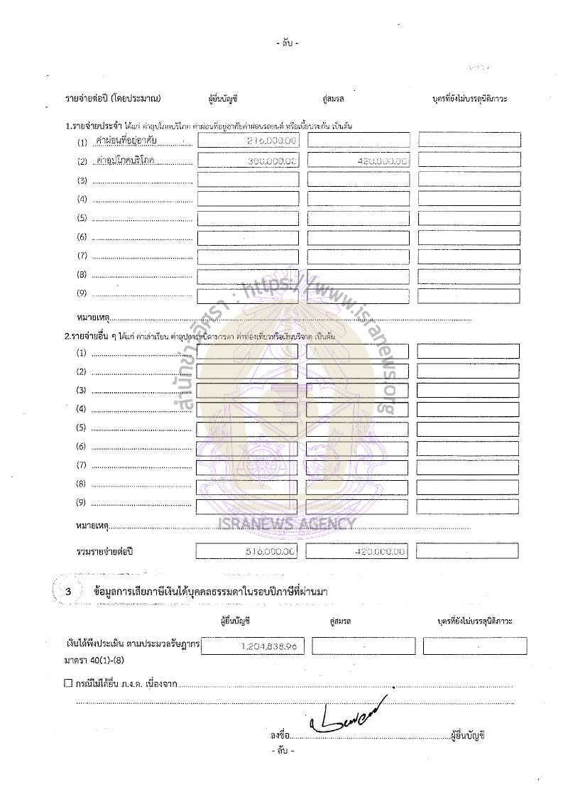แจ้งมีรายจ่าย 516,000 บาท จากค่าผ่อนที่อยู่อาศัย 216,000 บาท ค่าอุปโภคบริโภค 300,000 บาท