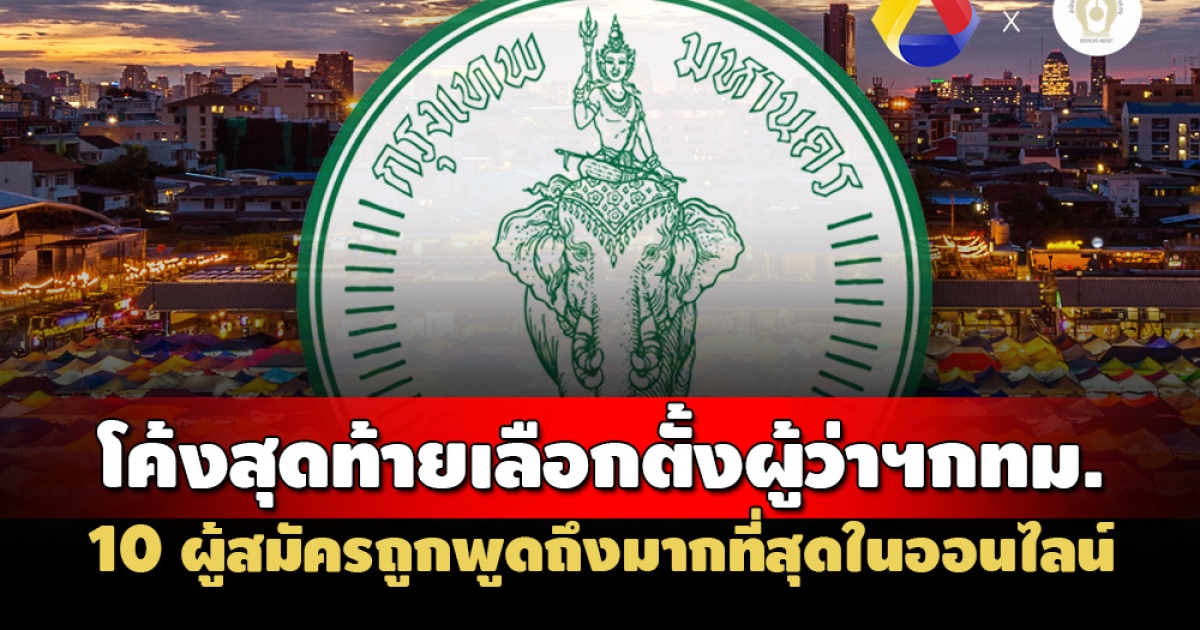 - 10 อันดับผู้สมัครผู้ว่าฯกทม.ถูกพูดถึงมากสุดในโลกออนไลน์
