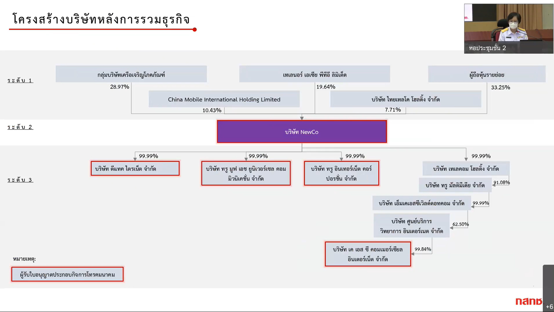 2.บริษัทย่อยของ TRUE และ DTAC จะยังอยู่เช่นเดิม และสัดส่วนผลประโยชน์การลงทุนในนิติบุคคลอื่นของ TRUE และ DTAC จะยังคงเป็นการลงทุนต่อไปภายใต้บริษัท NewCo