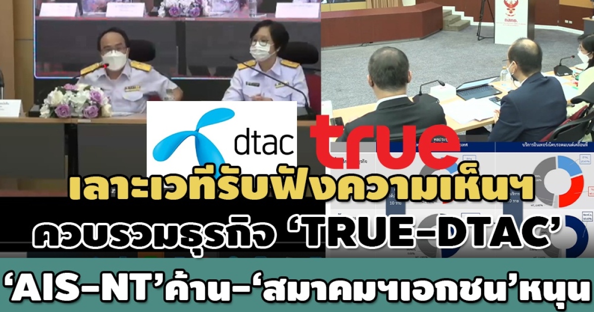 ทั้งนี้ ในการประชุมรับฟังความคิดเห็นสาธารณะฯครั้งนี้ มีทั้งเสียง 'คัดค้าน' และเสียง 'สนับสนุน' กรณีการรวมธุรกิจระหว่าง TRUE และ DTAC ซึ่งมีรายละเอียดที่น่าสนใจ ดังนี้