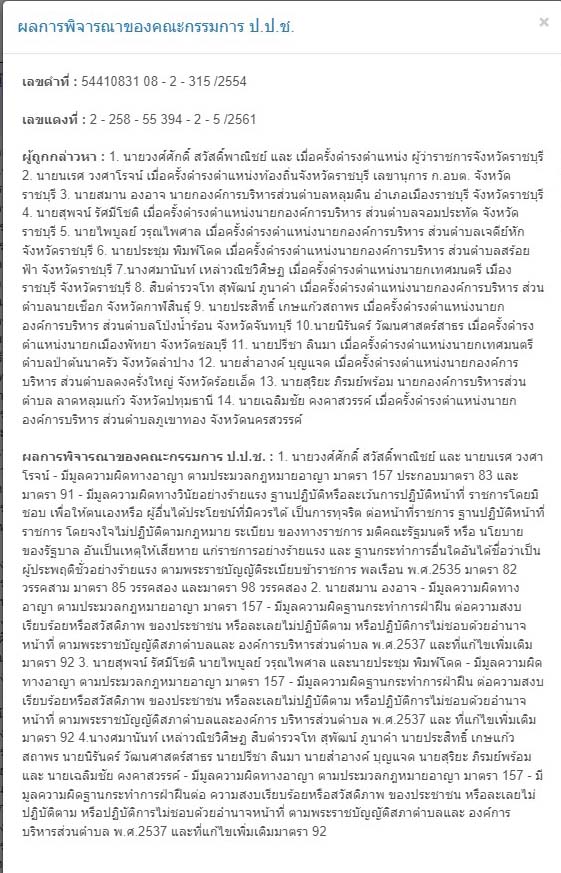 ผลการพิจารณาของคณะกรรมการ ป.ป.ช. มีดังนี้