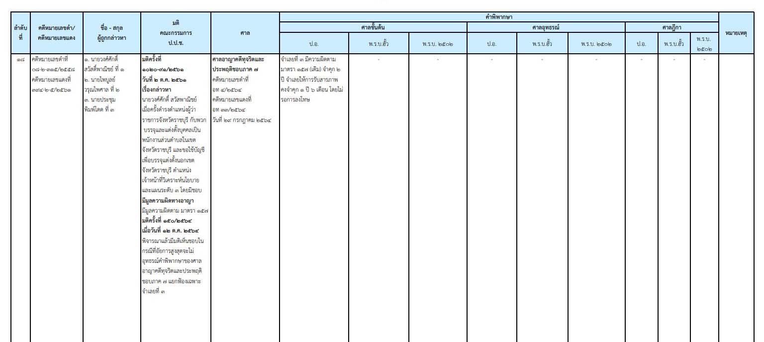 โดยล่าสุด ศาลอาญาคดีทุจริตและประพฤติมิชอบภาค 7 มีคำพิพากษาตัดสินลงโทษจำคุก นายประชุม พิมพ์โดด เมื่อครั้งดำรงตำแหน่งนายกองค์การบริหารส่วนตำบล (อบต.) สร้อยฟ้า อำเภอโพธาราม จังหวัดราชบุรี ซึ่งเป็นหนึ่งในจำเลยคดีนี้ ไปแล้ว เป็นเวลา 1 ปี 6 เดือน โดยไม่รอลงอาญา