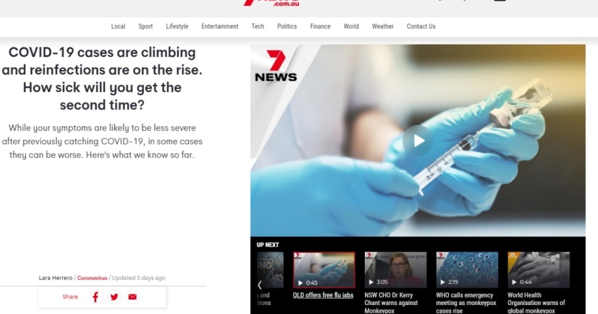 ล่าสุดสำนักข่าว 7 News ของประเทศออสเตรเลียได้มีการเขียนบทความวิเคราะห์เกี่ยวกับกรณีการติดเชื้อซ้ำ และความเป็นไปได้ว่าการติดเชื้อซ้ำนั้นอาจจะรุนแรงกว่าการติดเชื้อครั้งแรกสำหรับบางคน