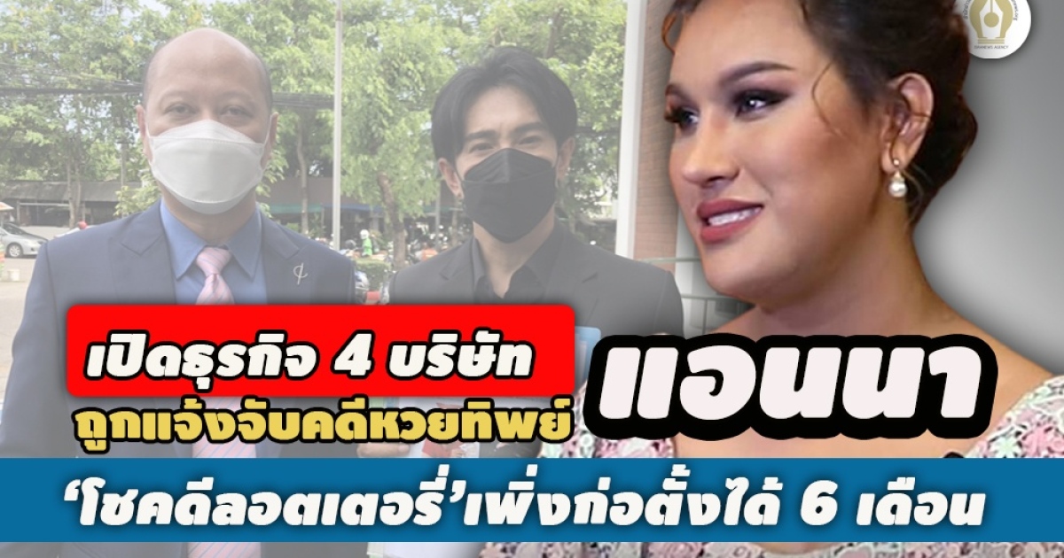 เปิดธุรกิจ 4 แห่ง ‘แอนนา-วรินทร วัตรสังข์’ ผู้ถูกกล่าวหาคดีฉ้อโกง ขายสลากออนไลน์ ไม่มีอยู่จริง ร่วม ‘ต๊ะ บอยสเกาท์’ – บ.โชคดีลอตเตอรี่’ เพิ่งก่อตั้งปลายปี 2564 ‘แนน ขุนสวัสดิ์’ หุ้นใหญ่