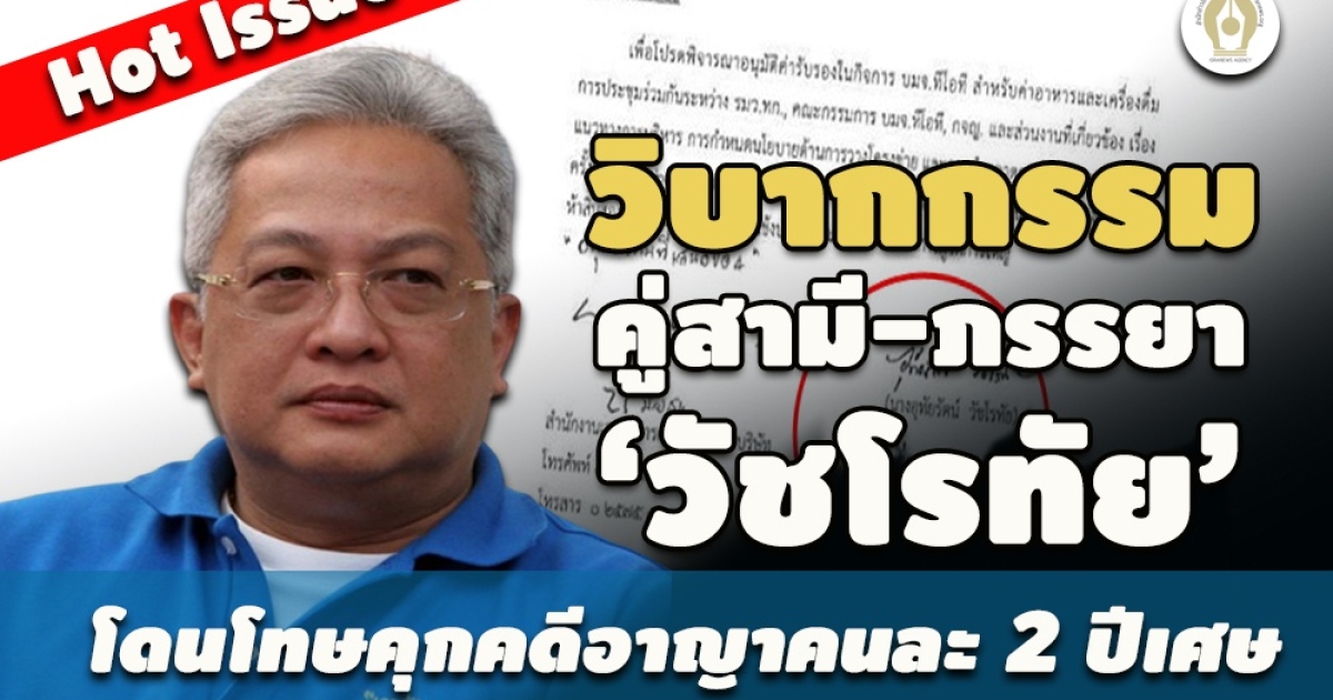 ณ วันนี้ นางอุทัยรัตน์ วัชโรทัย ภรรยา นายดิสธร วัชโรทัย ก็ถูกศาลฯ พิพากษาตัดสินลงโทษจำคุก เป็นเวลา 2 ปี 2 เดือน 20 วัน