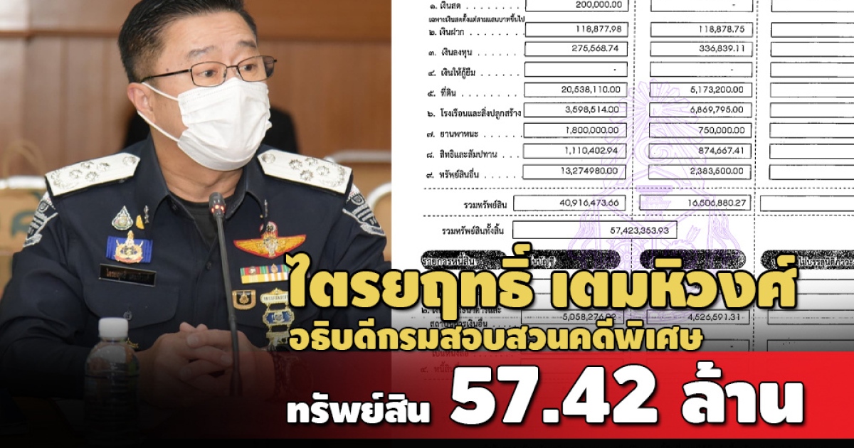 ทรัพย์สิน 57.42 ล้านบาท'ไตรยฤทธิ์ เตมหิวงศ์'อธิบดีดีเอสไอ รายได้ต่อปี 3.13 ล้านบาท สะสมพระเครื่อง 42 องค์ 8.84 ล้านบาท พระบูชา 19 องค์ ประเมินราคาไม่ได้ ทองคำแท่งน้ำหนักรวม 140 บาท
