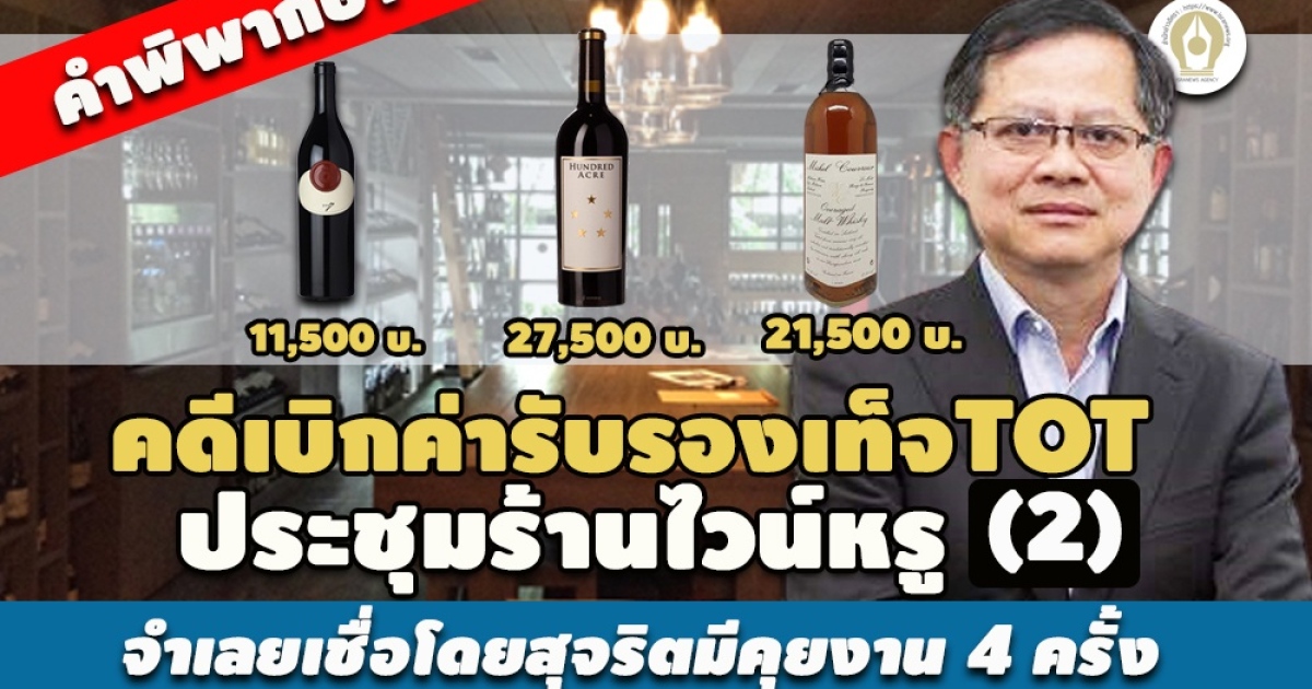 - คำพิพากษาคดีเบิกค่ารับรองเท็จประชุมร้านไวน์หรู (1) จัดเลี้ยงสังสรรค์อ้าง3จี-รมต.มาด้วย
