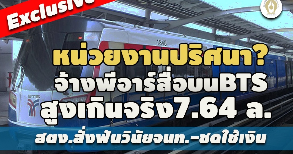 ขณะที่หน่วยงานของรัฐแห่งนี้ ชี้แจงว่า การจ้างประชาสัมพันธ์บนรถไฟฟ้า BTS ยังไม่ได้ประกาศกำหนดหลักเกณฑ์ในการคำนวณราคากลาง และกรมบัญชีกลางยังไม่ได้จัดทำราคาอ้างอิงของพัสดุที่จะดำเนินการจัดจ้าง อีกทั้งสำนักงบประมาณหรือหน่วยงานกลางอื่น ๆ ก็ไม่ได้กำหนดราคามาตรฐานที่จะจัดจ้างลักษณะนี้