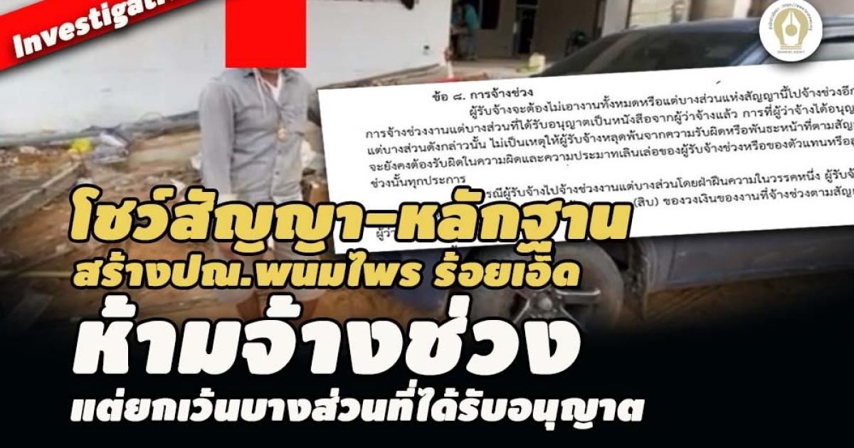 ล่าสุด สำนักข่าวอิศรา สืบค้นข้อมูลสัญญาจ้างงานก่อสร้างอาคารที่ทำการไปรษณีย์พนมไพร จังหวัดร้อยเอ็ด ระหว่าง บริษัทไปรษณีย์ไทย จำกัด กับ หจก. อัมพลก่อสร้าง 2006 ที่ลงนามเมื่อวันที่ 4 ก.พ.2564 ตามสัญญา ที่ กร.3/จร.2564 วงเงิน 12,776,232.20 บาท พบว่าในข้อ 8. ระบุเรื่องการจ้างช่วงงานว่า
