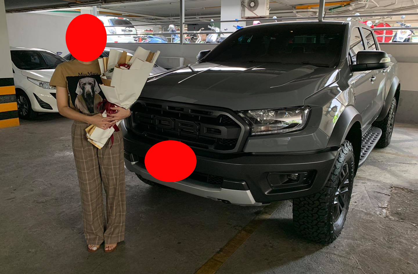ขณะที่จากการตรวจสอบฐานข้อมูลออนไลน์ พบว่า เมื่อวันที่ 13 พ.ค.2564 บริษัทขายรถยนต์แห่งหนึ่ง เคยโพสต์แสดงความขอบคุณ บุคคลที่มีชื่อและนามสกุล เหมือนกับ หญิงสาวคนสนิทปลัดกระทรวงปริศนา ที่ไปซื้อรถยนต์ Ford ranger raptor สีเทา ในช่วงเดือนพ.ค.2564 ที่ผ่านมา (ดูภาพประกอบ)
