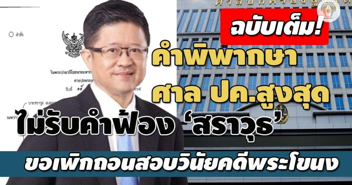 สำนักข่าวอิศรา (www.isranews.org) รายงานไปแล้วว่า เมื่อวันที่ 7 ก.ค. 2565 ที่ผ่านมา ศาลปกครองกลาง อ่านคำสั่งศาลปกครองสูงสุดในคดีหมายเลขดำที่ บ.271/2564 หมายเลขแดงที่ บ.188/2564 ระหว่าง นายสราวุธ เบญจกุล (ผู้ฟ้องคดี) กับ ประธานศาลฎีกา ที่ 1 กับพวกรวม 5 คน (ผู้ถูกฟ้องคดี) ในคดีที่อดีตเลขาธิการสำนักงานศาลยุติธรรม ยื่นฟ้องขอเพิกถอนคำสั่งแต่งตั้งคณะกรรมการสอบสวนวินัยร้ายแรง กรณีถูกกล่าวหาว่ากระทำผิดวินัยอย่างร้ายแรงเกี่ยวกับการจัดซื้อจัดจ้างปรับปรุงอาคารศาลจังหวัดพระโขนง
