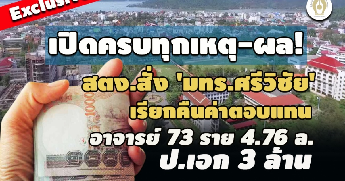 "...แหล่งข่าวจาก สตง.ให้ข้อมูลยืนยันสำนักข่าวอิศรา ว่า มทร.ศรีวิชัย ไม่ใช่มหาวิทยาลัยแห่งเดียวที่ถูกตรวจสอบพบปัญหาเรื่อง ยังมีอีกหลายมหาวิทยาลัยที่มีปัญหาในลักษณะเดียวกัน และต้องมีการถูกเรียกเงินคืนกลับมา..."