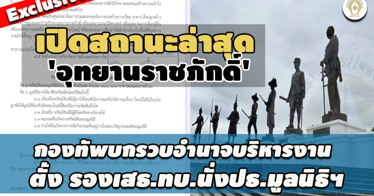 เบื้องต้น สำนักข่าวอิศรา สืบค้นข้อมูลเกี่ยวกับการบริหารของอุทยานราชภักดิ์ พบว่า เมื่อวันที่ 2 มิถุนายน 2565 ราชกิจจานุเบกษา ได้เผยแพร่ประกาศนายทะเบียนมูลนิธิ กรุงเทพมหานคร เรื่องจดทะเบียนแก้ไขเพิ่มเติมข้อบังคับของ มูลนิธิราชภักดิ์ ซึ่งนายทะเบียนมูลนิธิ กทม.ได้จดทะเบียนแก้ไขเพิ่มเติมข้อบังคับของมูลนิธิแล้ว ตั้งแต่เมื่อวันที่ 1 เมษายน 2565