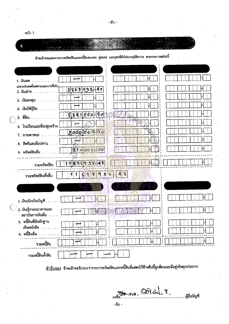 รวมทรัพย์สินทั้งสิ้น 11,518,938.48 บาท ไม่มีหนี้สิน