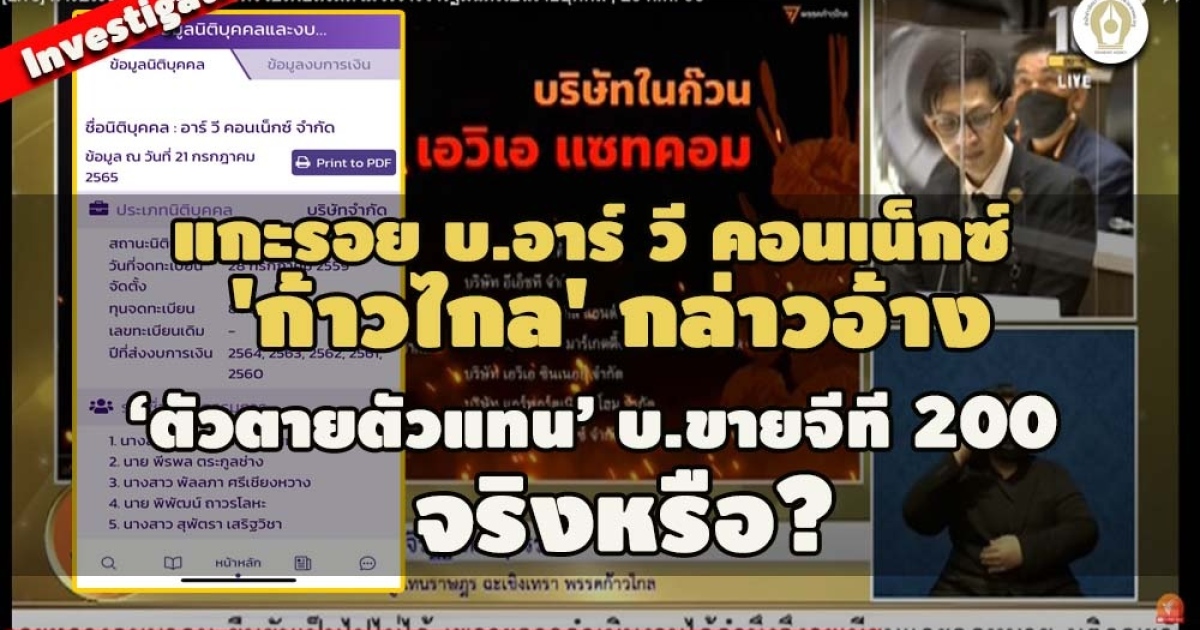 ทั้งหมดนี่ คือ ข้อมูลเชิงลึกของ บริษัท R V CONNEX และผู้เกี่ยวข้องที่ นายจิรัฏฐ์ ทองสุวรรณ์ ส.ส.จังหวัดฉะเชิงเทรา เขต 4 พรรคก้าวไกล กล่าวอ้างถึง
