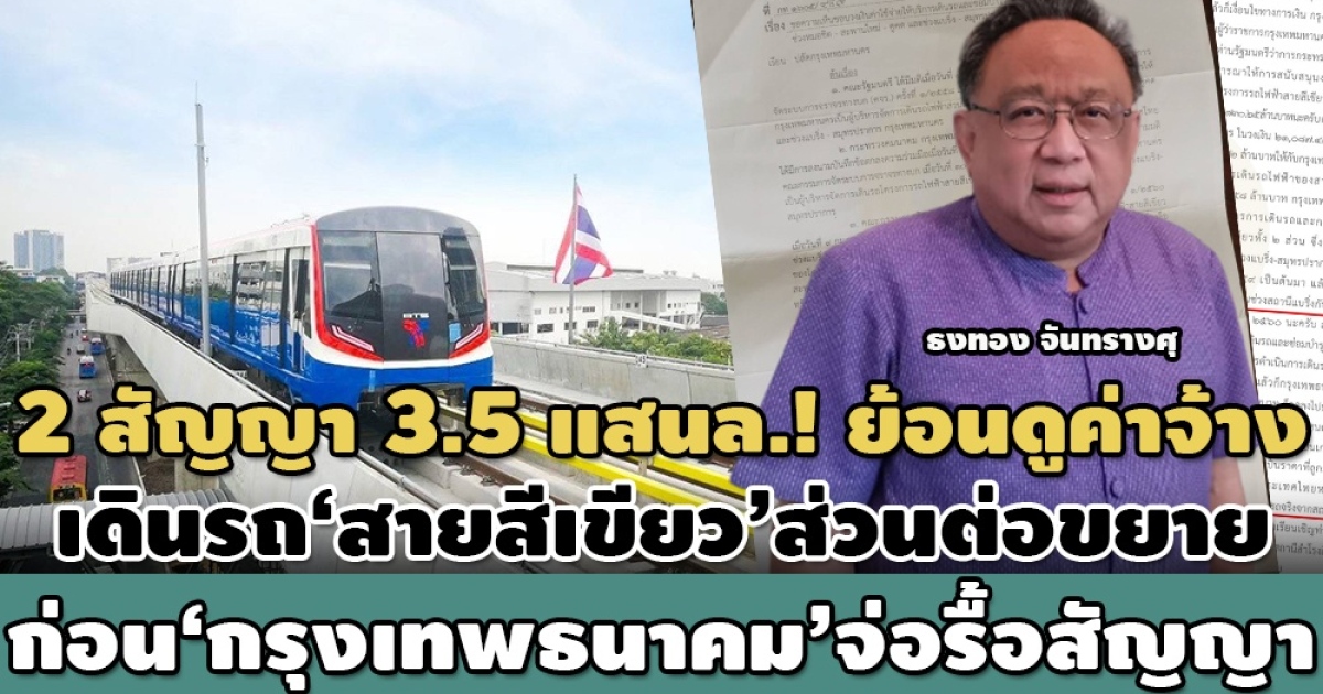 แต่ในช่วงที่ผ่านมาปรากฏข้อมูลเกี่ยวกับวงเงิน ‘ค่าจ้างเดินรถ’ รถไฟฟ้าสายสีเขียว ส่วนต่อขยายทั้ง 2 ช่วง สำนักข่าวอิศรา จึงขอนำเสนอข้อมูลเกี่ยวกับค่าจ้างเดินรถไฟฟ้าสายสีเขียว ส่วนต่อขยายทั้ง 2 ช่วง ซึ่งมีวงเงินรวม วงเงินรวม 3.51 แสนล้านบาท ให้สาธารชนได้รับทราบ ดังนี้