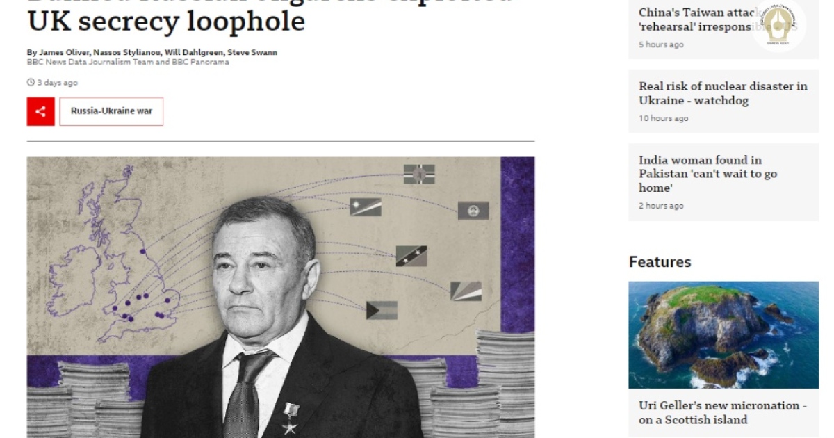 ส่องคดีทุจริตโลก สำนักข่าวอิศรา (www.isranews.org) ในสัปดาห์นี้ขอเสนอประเด็นโอลิการ์ช (มหาเศรษฐีผู้ทรงอิทธิพล) ของประเทศรัสเซียนั้นได้มีการใช้บริษัทเปลือกหอยในสหราชอาณาจักรเพื่อจะหลบเลี่ยงมาตรการคว่ำบาตรจากตะวันตก