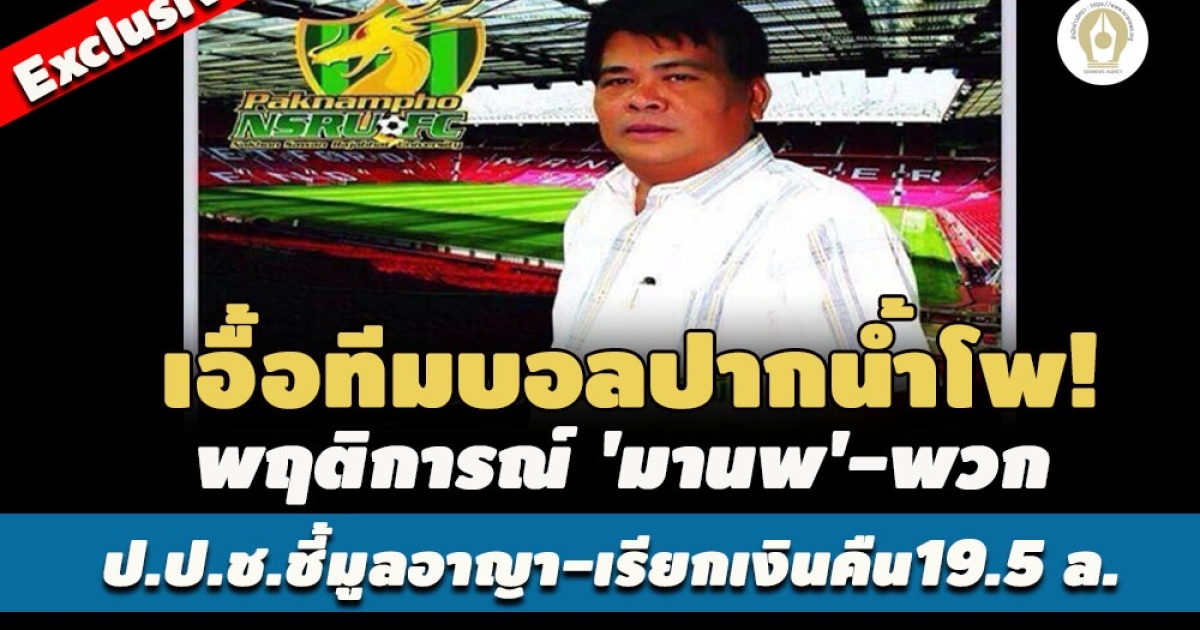 ซึ่งนายมานพ ศรีผึ้ง ผู้ถูกกล่าวหาที่ 1 มีอำนาจอนุมัติให้เบิกจ่ายเงินดังกล่าว เพื่อนำเงินอุดหนุนดังกล่าวไปเพื่อประโยชน์แก่ทีมสโมสรฟุตบอลปากน้ำโพ เอ็นเอสอาร์ยูเอฟซี ซึ่งเป็นทีมฟุตบอลอาชีพ ที่ดำเนินการในเชิงธุรกิจของเอกชน มีผลประโยชน์ มีรายได้เป็นของตนเอง โดยมี นายมานพ ศรีผึ้ง ผู้ถูกกล่าวหาที่ 1 เป็นประธานสโมสร เป็นเหตุให้เกิดความเสียหายแก่ทางราชการ จำนวน 19,500,000 บาท
