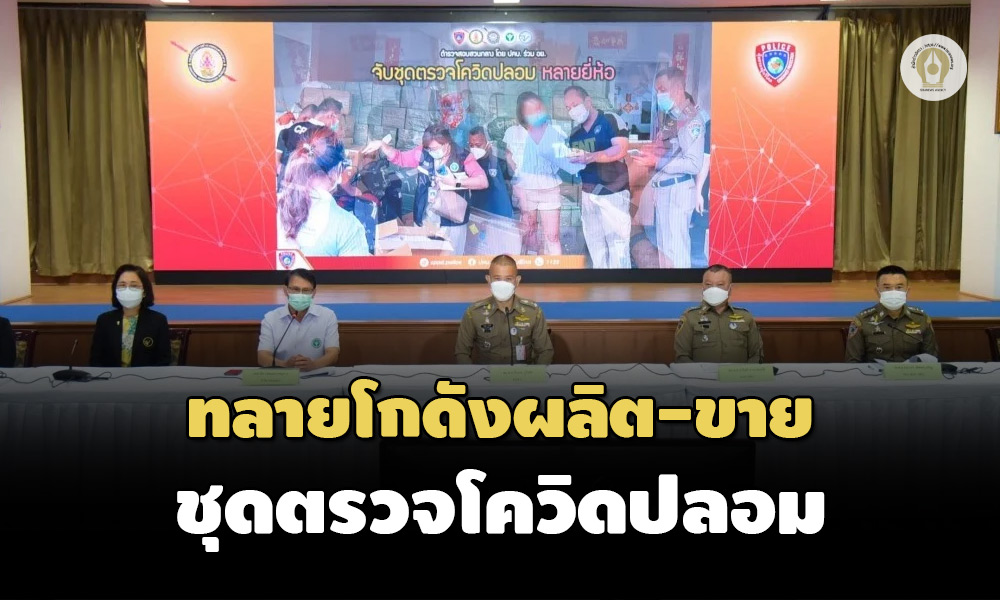 กรณี พล.ต.ท.จิรภพ ภูริเดช ผบช.ก. พร้อมด้วย พล.ต.ต.อนันต์ นานาสมบัติ ผบก.ปคบ. พ.ต.อ.ธรากร เลิศพรเจริญ รอง ผบก.ปคบ. พ.ต.อ.เนติ วงษ์กุหลาบ ผกก.4 บก.ปคบ. และ นพ.ไพศาล ดั่นคุ้ม เลขาธิการคณะกรรมการอาหารและยา (อย.) แถลงผลทลายแหล่งผลิตและขายชุดตรวจโควิด-19 ปลอม มูลค่ากว่า 2 ล้านบาท หลังเข้าตรวจค้นจับกุม 2 จุดในพื้นที่ จ.นนทบุรี และ จ.นครปฐม