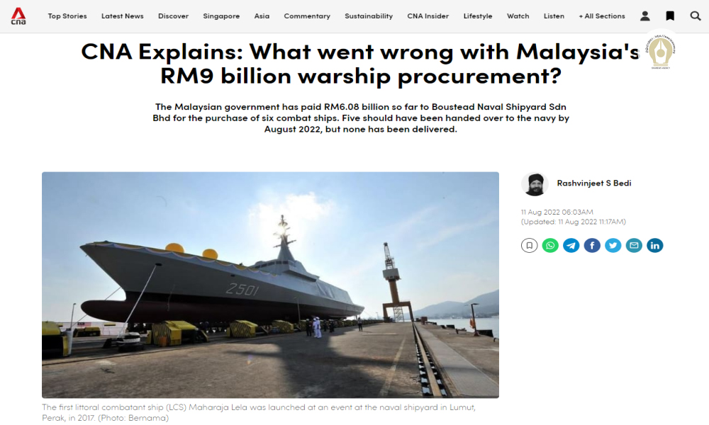 “อย่างไรก็ตาม ไม่พบว่ามีการส่งมอบเรือ LCS แม้แต่ลำเดียว ซึ่งตามช่วงเวลาที่ได้มีการประกาศไว้นั้น เรือ LCS จำนวนห้าลำควรจะต้องต่อจนเสร็จและมีการส่งมอบแล้วในช่วงเดือน ส.ค. 2565” นายหว่องกะหว่อ (Wong Kah Woh) ประธาน PAC และ ส.ส.พรรค Ipoh Timor กล่าวเมื่อวันที่ 4 ส.ค. ที่ผ่านมา