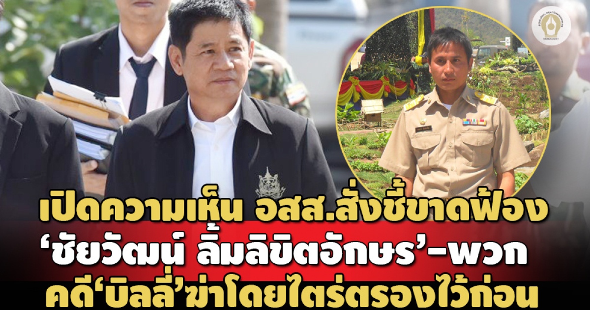 สำนักข่าวอิศรา (www.isranews.org) รายงานแล้วว่า เมื่อวันที่ 10 ส.ค.2565 สำนักงานอัยการสูงสุด (อสส.) ทำหนังสือถึงอธิบดีกรมสอบสวนคดีพิเศษ กรณีมีคำสั่งชี้ขาดให้ฟ้อง นายชัยวัฒน์ ลิ้มลิขิตอักษร ผู้ต้องหาที่ 1 นายบุญแทน บุษราคัม ผู้ต้องหาที่ 2 นายธนเสฏฐ์ หรือ ไพฑูรย์ แช่มเทศ ผู้ต้องหาที่ 3 และนายกฤษณพงษ์ จิตต์เทศ ผู้ต้องหาที่ 4 หนึ่งในนั้นเป็นข้อหา ร่วมกันฆ่าผู้อื่นโดยไตร่ตรองไว้ก่อน กรณี นายพอละจี รักจงเจริญ หรือ บิลลี่ ชาวกะเหรี่ยงบ้านบางกลอยในป่าแก่งกระจาน อ.แก่งกระจาน จ.เพชรบุรี ที่หายตัวไปตั้งแต่วันที่ 17 เม.ย.2557