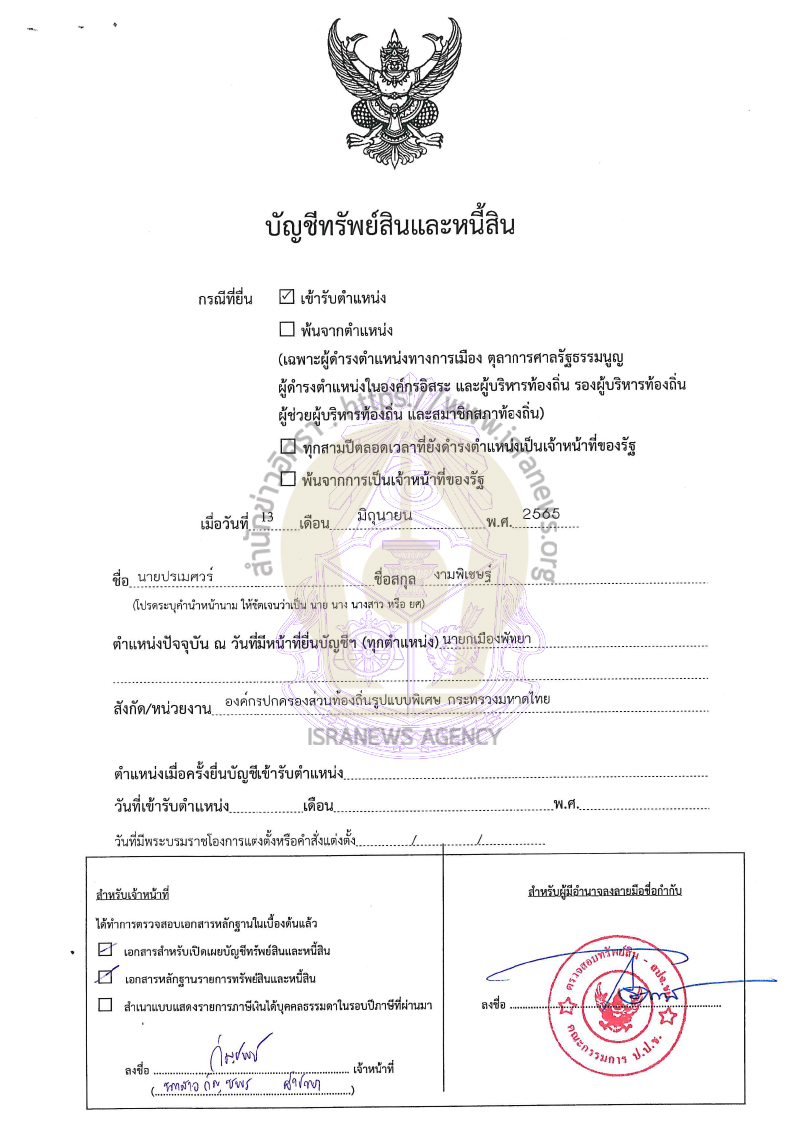 ผู้สื่อข่าวรายงานว่า เมื่อวันที่ 14 ก.ย.2565 สำนักงานคณะกรรมการป้องกันและปราบปรามการทุจริตแห่งชาติ (ป.ป.ช.) เปิดเผยบัญชีทรัพย์สินและหนี้สินและเอกสารประกอบของผู้ดำรงตำแหน่งระดับสูง รายของ นายปรเมศวร์ งามพิเชษฐ์ กรณี เข้ารับตำแหน่งนายกเมืองพัทยา เมื่อวันที่ 13 มิ.ย.2565