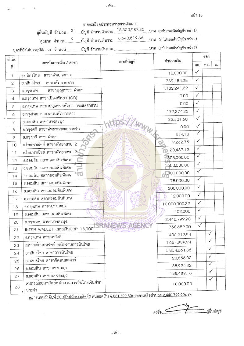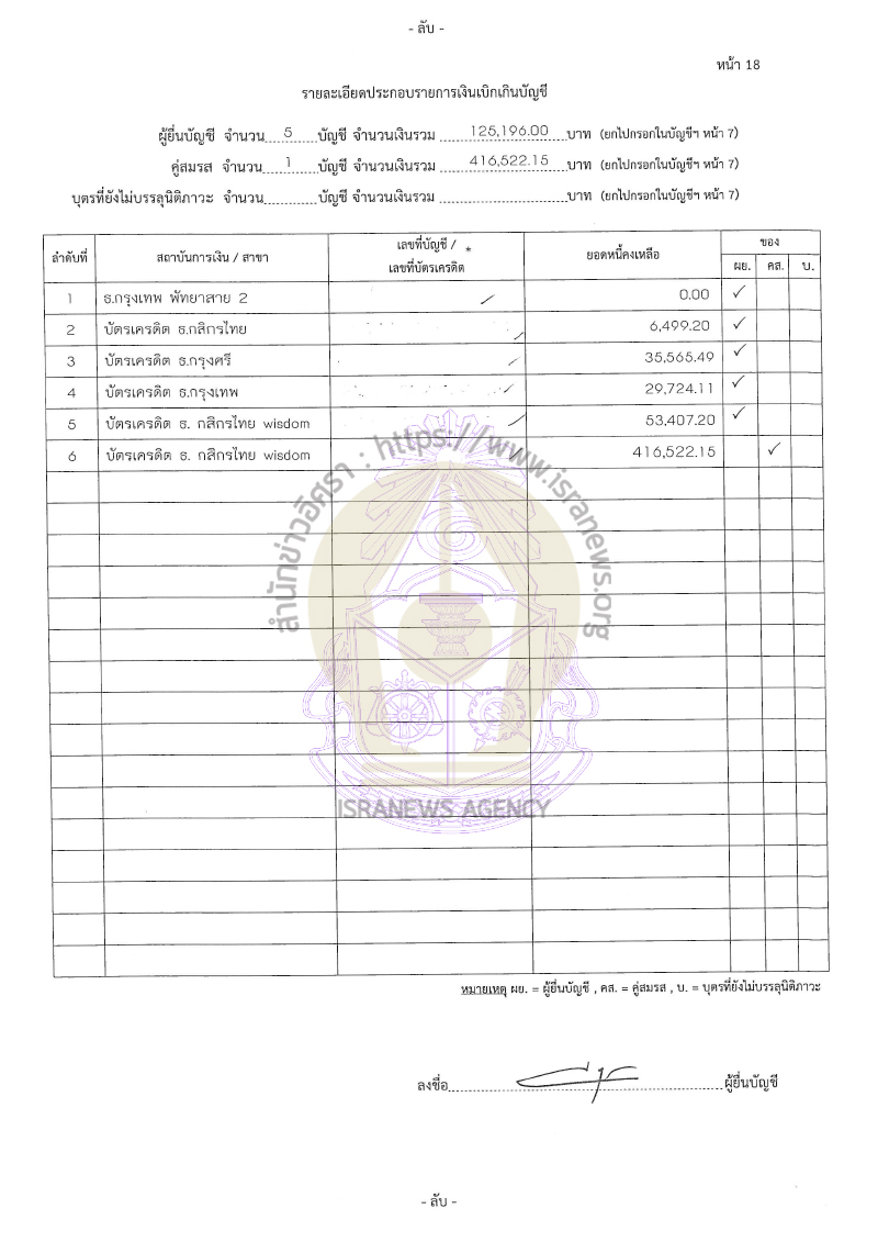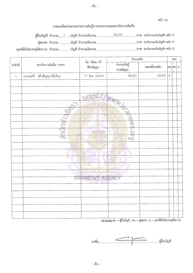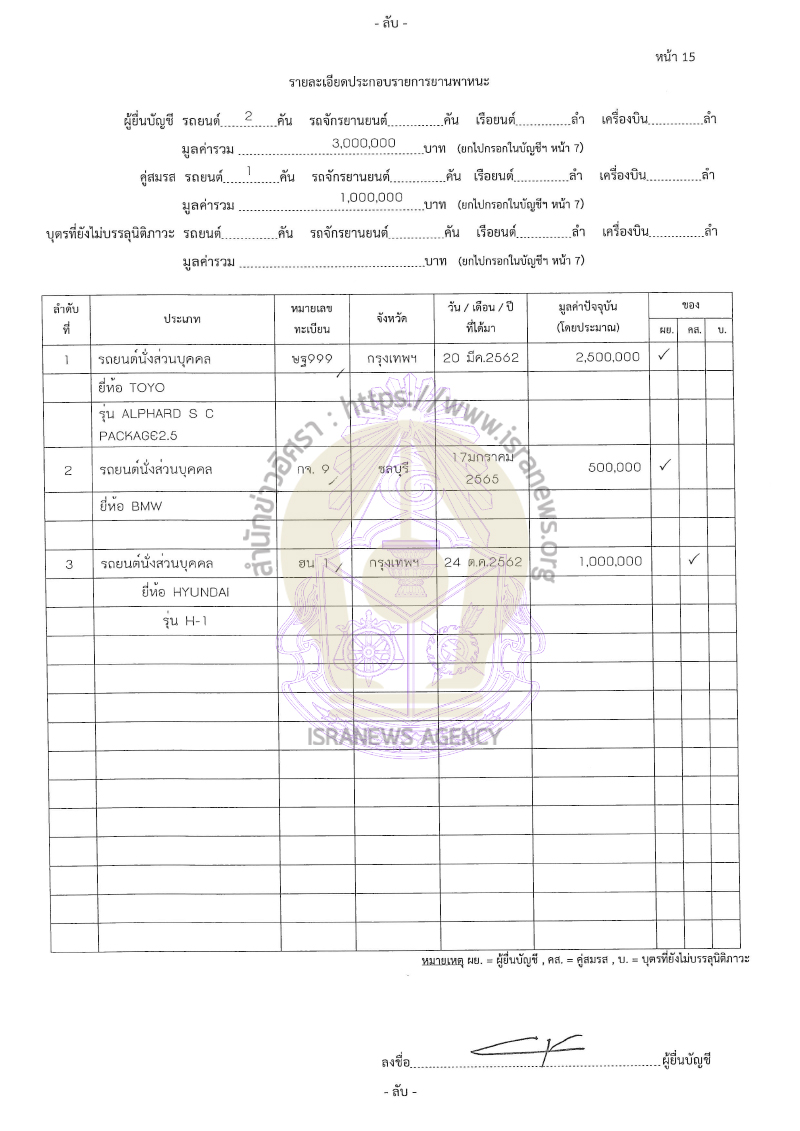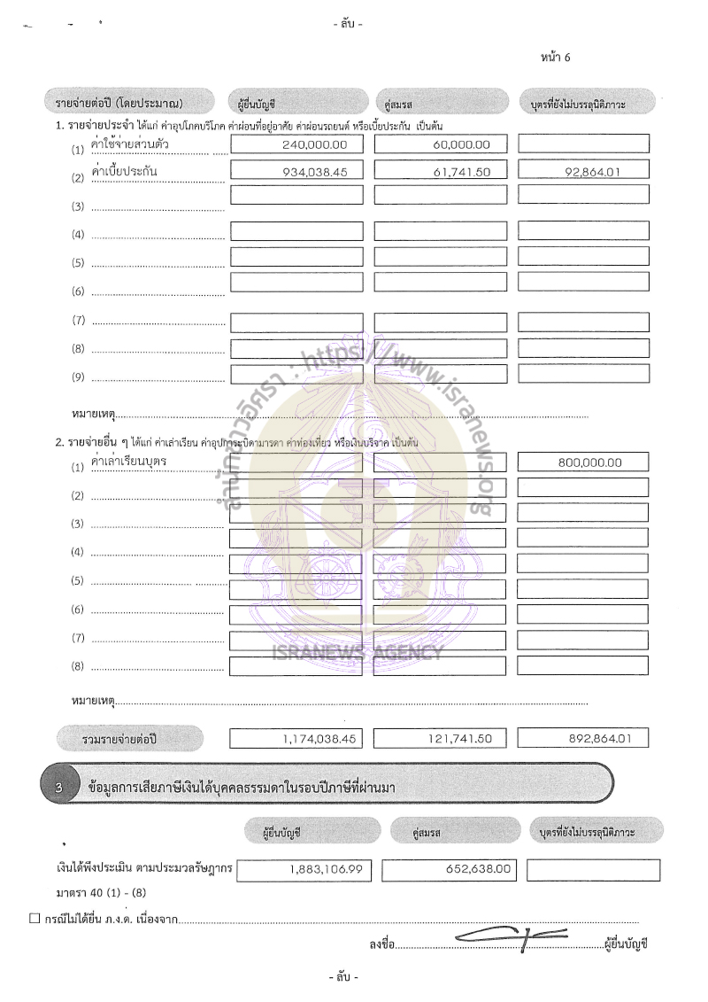 แจ้งมีรายจ่าย 1,174,038.45 บาท จากค่าใช้จ่ายส่วนตัว 240,000 บาท ค่าเบี้ยประกัน 934,038.45 บาท