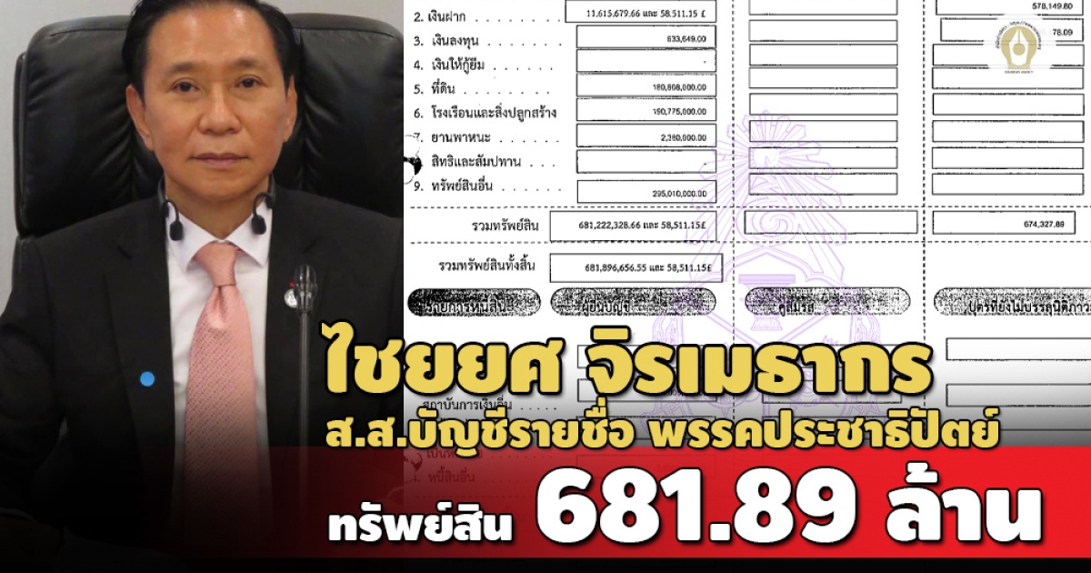 ทรัพย์สิน 681.89 ล้านบาท 'ไชยยศ จิรเมธากร' นั่ง ส.ส.ประชาธิปัตย์ ที่ดิน 373 ไร่ 180 ล้านบาท คอนโดหรูกลางกรุง ห้อง 72.32 ล้านบาท ทาวเฮ้าส์ที่อังกฤษ 26 ล้านบาท สะสมปืน 36 กระบอก พระเครื่อง วัตถุโบราณ งาช้าง ภาพวาด 98 รายการ มูลค่ารวม 256.55 ล้านบาท
