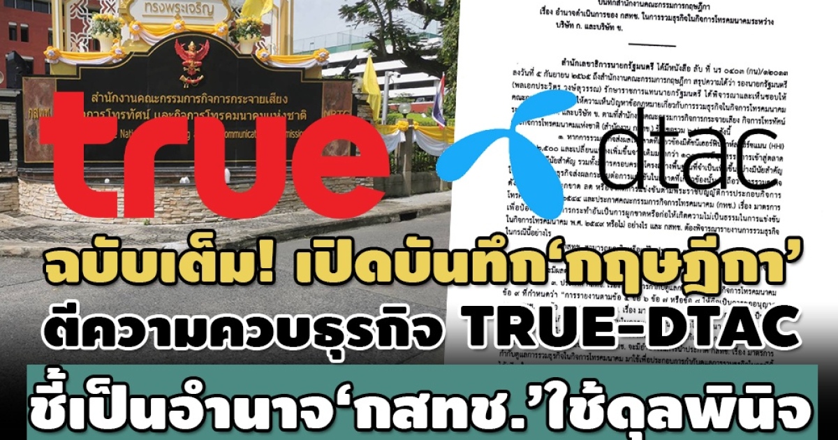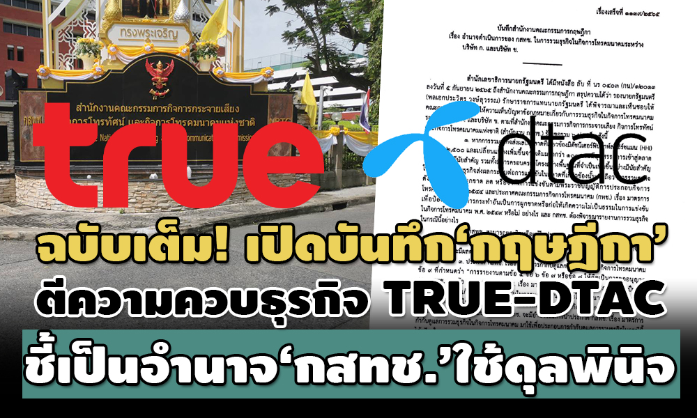 หารือรอบ 2! เปิดหนังสือ‘กสทช.’ ชง‘นายกฯ’สั่ง‘กฤษฎีกา’ตีความ 6 ปมข้อกฎหมายควบ TRUE-DTAC