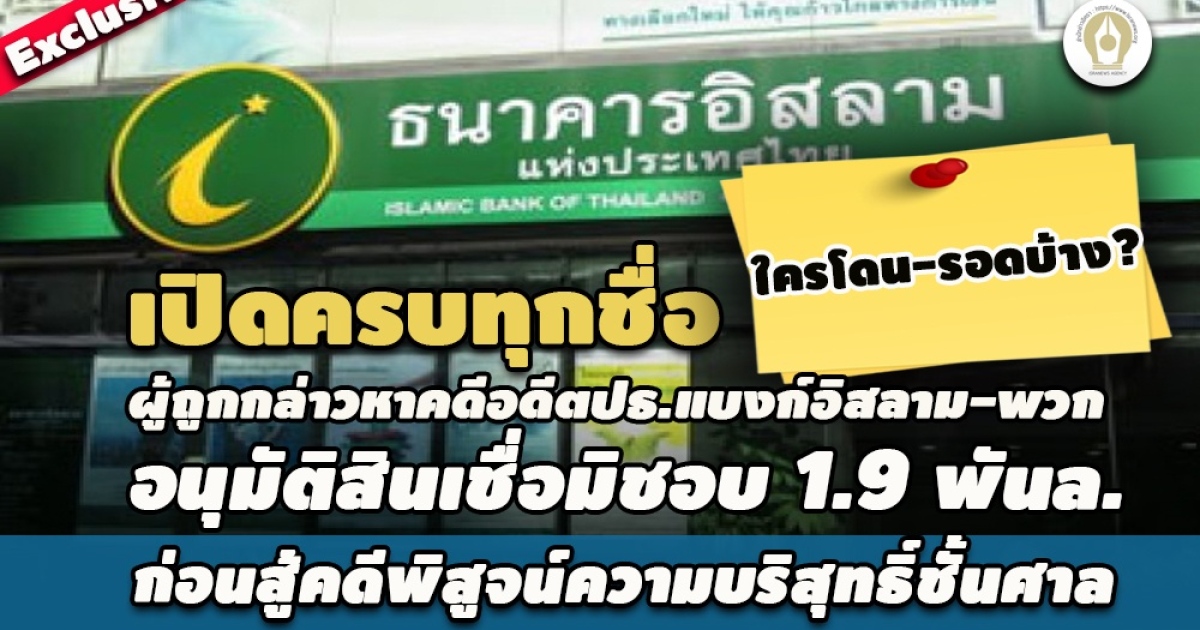 - วงเงินเกินอำนาจ! เปิดข้อกล่าวหาคดีอดีตปธ.แบงก์อิสลาม-พวก อนุมัติสินเชื่อมิชอบ1.9 พันล.