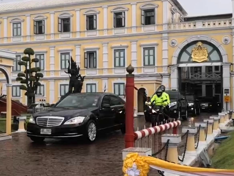 ขบวนรถของ พล.อ.ประยุทธ์ จันทร์โอชา เดินทางออกจากกระทรวงกลาโหม เพื่อกลับบ้านพักภายในกรมทหารราบที่ 1 มหาดเล็กราชวัลลภรักษาพระองค์ เมื่อ 11.49น. เพื่อรอฟังคำวินิจฉัยศาลรัฐธรรมนูญ ภาพจาก Facebook: Prachaya Nongnuch