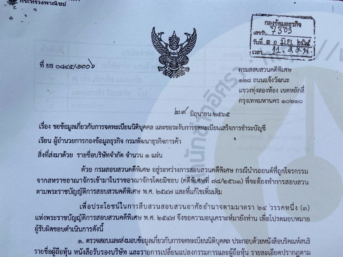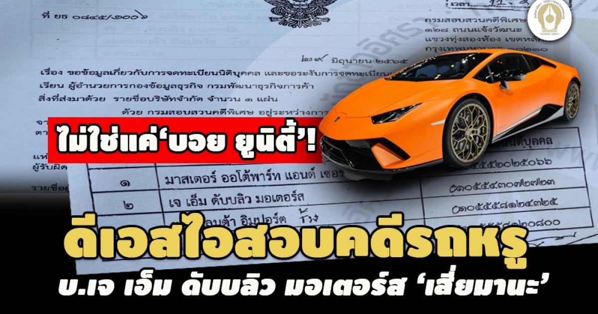 ไม่ใช่แค่กลุ่ม‘บอย ยูนิตี้’! เปิดหนังสือดีเอสไอส่งกรมพัฒนาฯสาวลึก ระงับจดทะเบียนเสร็จชำระบัญชี 4 บริษัทคดีโจรกรรมรถหรูต่างประเทศ บ.เจ เอ็ม ดับบลิว มอเตอร์ส ‘มานะ สมบูรณ์ทรัพย์’มีชื่อด้วย ก่อนหน้าเคยถูกบุกค้นปี 2560