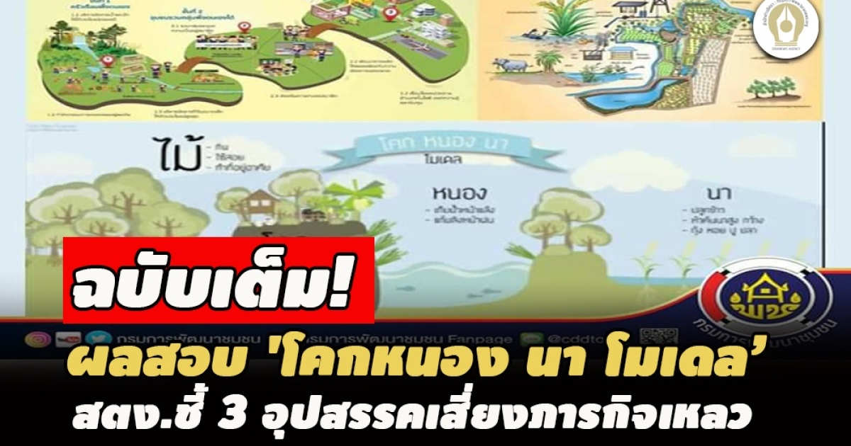 ต่อไปนี้ เป็นรายงานผลการตรวจสอบ โครงการพัฒนาพื้นที่ต้นแบบการพัฒนาคุณภาพชีวิตตามหลักทฤษฎีใหม่ ประยุกต์สู่ “โคกหนอง นา โมเดล” ของ สตง. ฉบับเต็ม