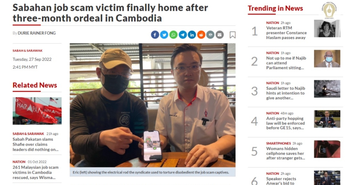 เรียบเรียงจาก:https://www.thestar.com.my/news/nation/2022/09/27/sabahan-job-scam-victim-finally-home-after-three-month-ordeal-in-cambodia