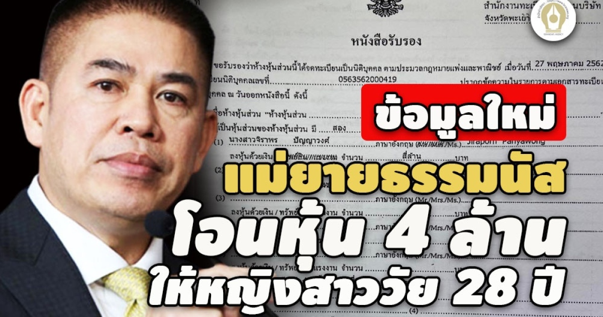 - เอกสาร 3 ชุด ปมเมีย‘ธรรมนัส’โอนหุ้นให้แม่ - เพิ่มทุน 4 ล้าน
