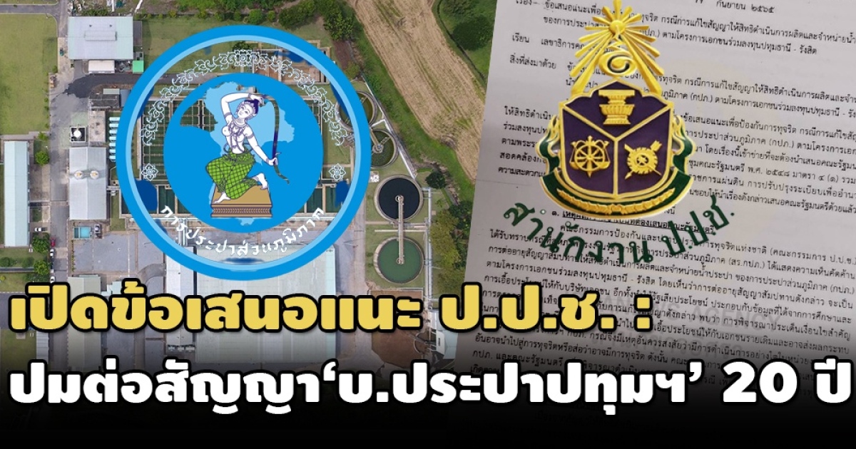 คำชี้แจง'กปภ.'! ปมต่อสัญญาซื้อน้ำ‘บ.ประปาปทุมฯ' 20 ปี-'มท.’ขอตัว‘คนค้าน’ช่วยราชการฯ