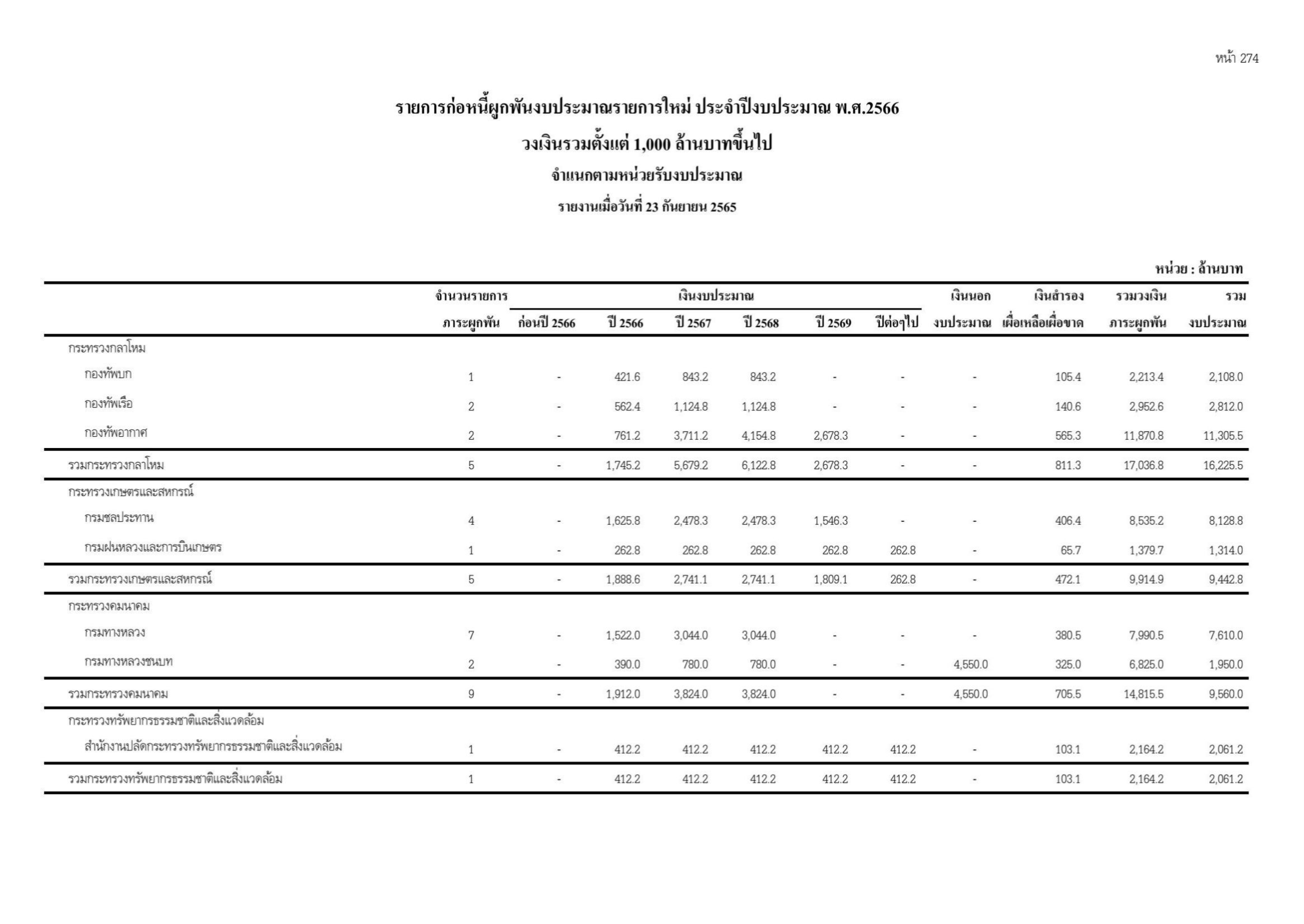 เหล่านี้เป็นรายละเอียดเบื้องต้นเกี่ยวกับรายการก่อหนี้ผูกพันข้ามปีฯ ปีงบ 2566 ในรายการก่อหนี้ฯที่มีวงเงินรวมตั้งแต่ 1,000 ล้านบาทขึ้นไป ซึ่งเมื่อประมูลหรือจัดหาแล้วเสร็จ จะต้องเสนอให้ พล.อ.ประยุทธ์ จันทร์โอชา นายกรัฐมนตรี และรมว.กลาโหม รับทราบอีกครั้ง ก่อนลงนามในสัญญาต่อไป