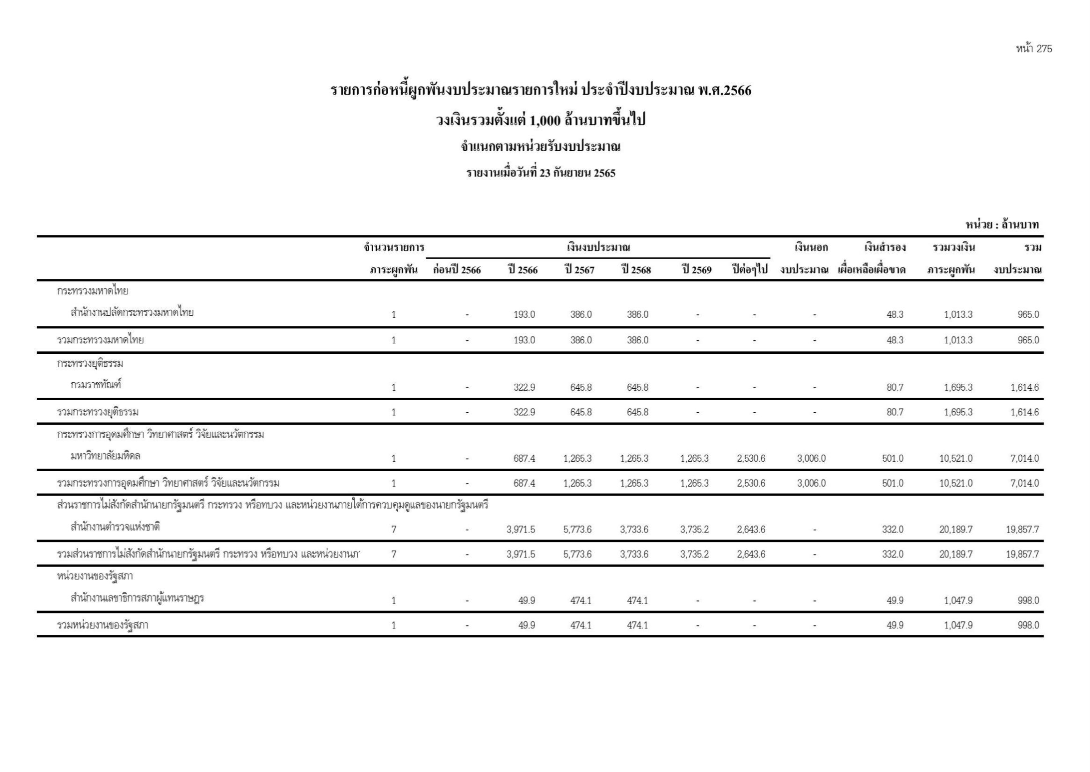 INFO : เปิดรายการก่อหนี้ผูกพันข้ามปี ปีงบ 66 (ผูกพันงบปี 66-70)