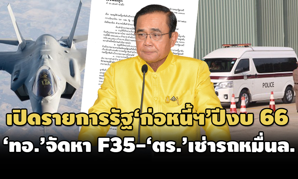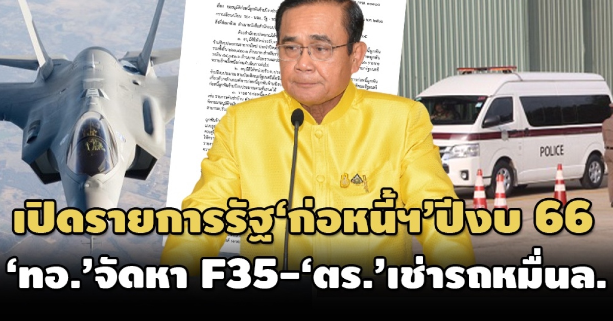 “…4.โครงการจัดหาเครื่องบินขับไล่โจมตีทดแทน ระยะที่ 1 (โครงการใหม่ผูกพัน ทอ.111-จัดหาเครื่องบินรบ F-35A จำนวน 2 ลำ ไม่มีระบบอาวุธ) งบประมาณ 7,382.7 ล้านบาท (เงินสำรองเผื่อเหลือเผื่อขาด 369.1 ล้านบาท รวมภาระผูกพัน 7,751.8 ล้านบาท) ระยะเวลาภาระผูกพัน 4 ปี หรือตั้งแต่ปีงบ 2566-69…”