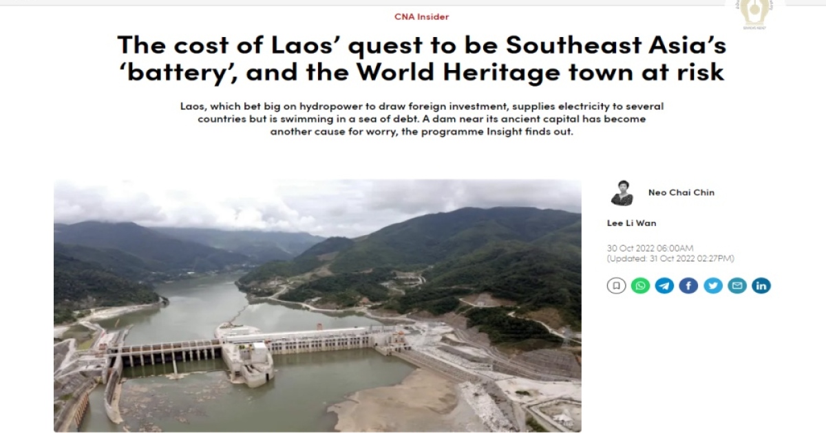 และล่าสุดเมื่อประมาณวันที่ 30 ต.ค.ที่ผ่านมาสำนักข่าวแชนนอลนิวส์เอเชียของประเทศสิงคโปร์ก็ได้ออกบทความฉบับหนึ่งวิเคราะห์เกี่ยวกับประเด็นของประเทศลาว ที่ตัดสินใจแค่ว่าต้องการจะเป็นแหล่งแบตเตอรี่ของภูมิภาคเอเชียตะวันออกเฉียงใต้หรือว่าอาเซียนเท่านั้น ทว่าสิ่งที่ประเทศลาวและประเทศเพื่อนบ้านรวมถึงไทยต้องสูญเสียไปนั้นมีมากมาย ทั้งในประเด็นเรื่องของมรดกทางวัฒนธรรม,สิ่งแวดล้อม และวิถีชีวิตของผู้คนที่อาศัยอยู่กับแม่น้ำโขงมาอย่างยาวนาน
