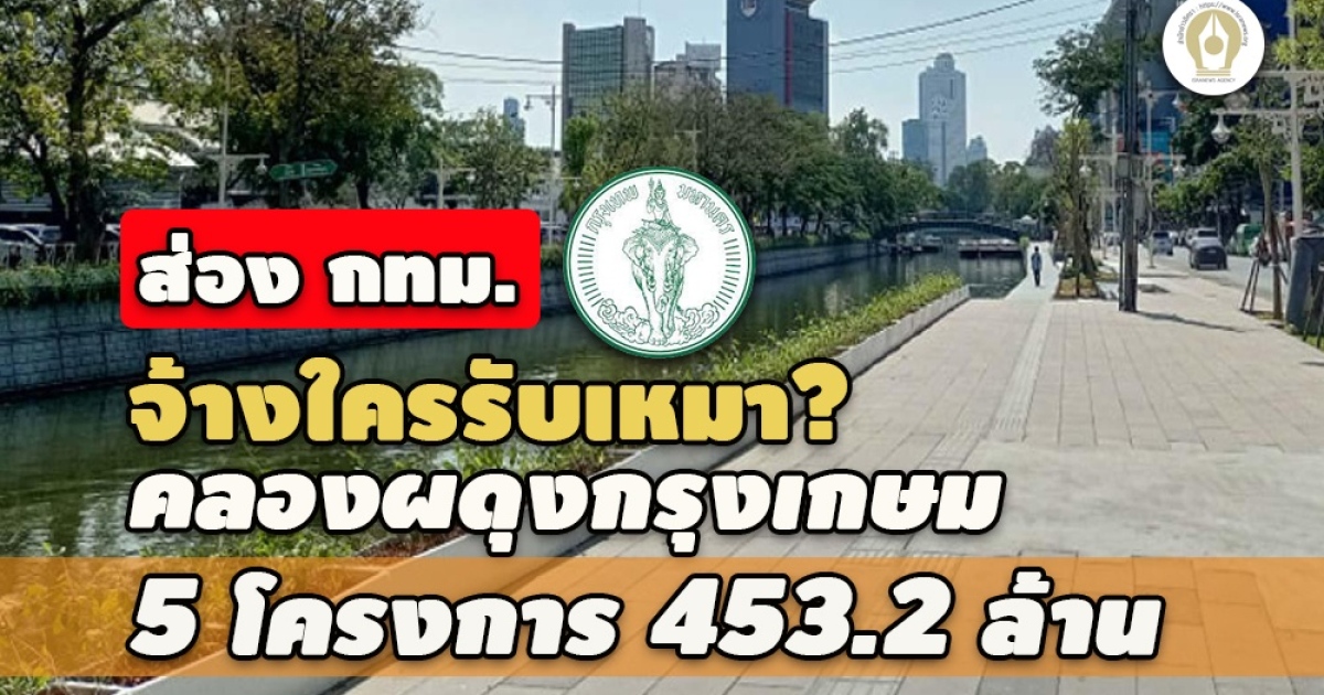 ตามส่อง กทม.ประกวดราคาจ้างก่อสร้างปรับปรุงภูมิทัศน์บริเวณริมคลองผดุงกรุงเกษม 5 โครงการรวด งบฯ 453.2 ล้าน ออกประกาศพร้อมกัน กำหนดเคาะราคาวันเดียวกัน เอกชน 4 รายเป็นผู้ชนะ ห่างจากราคากลาง 100,000 - 900,000 บาท